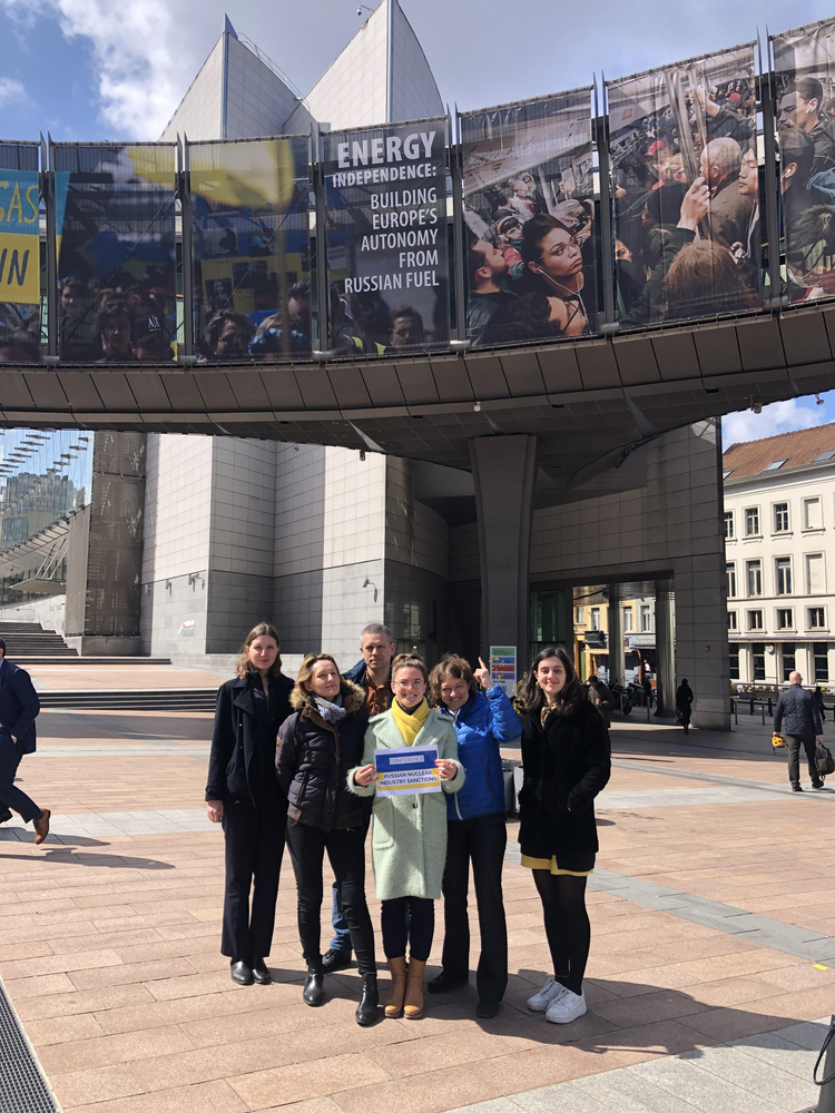 Von Anfang bemühte sich das Europäische Parlament um Sanktionen gegen die russische Nuklearindustrie. Etwa auch auf Einladung des Abgeordneten und Koordinatoren des United for Ukraine Networks, Andrius Kubelius, fand eine kleine Konferenz am 25. April 2023 im Europäischen Parlament statt. Ebenso für Sanktionen gegen Rosatom ausgesprochen hat sich dort der Botschafter der Ukraine bei der EU Vsevolod Chentsov, sowie die Präsidentin des ukrainischen Thinktanks DiXigroup sowie ein Vertreter des ukrainischen Energieversorger Energoatom. Zu den Verflechtungen der westlichen Atomindustrie mit der russischen sprach Patricia Lorenz basierend auf ihrem Bericht „Russian Grip on EU Nuclear Power“