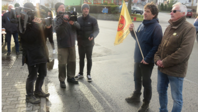 Die Gemeinden zeigten sich sehr enttäuscht, wurde ihnen doch Ende 2022 ein anderes vorgestellt. Der Protest ließ nicht lange auf sich warten, die Bevölkerung schreckte auch vor teilweisen Straßenblockaden nicht zurück. Im Bild unten die Bürgermeister am Standort Březový potok: