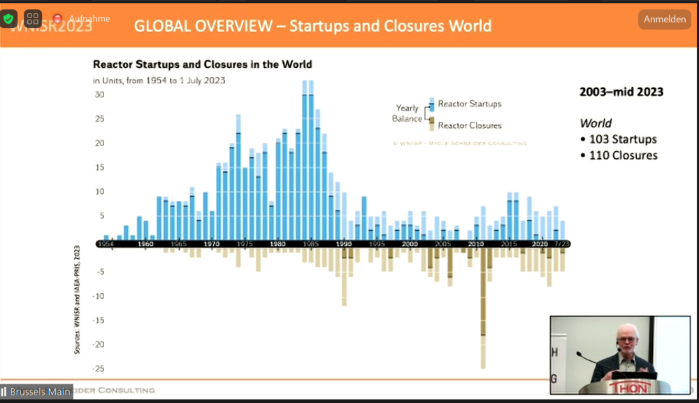 Ebenso vom Zustand der Industrie berichtete Tim Judson von NIRS aus den USA, von Korruption und Haftstrafen, aber auch davon, dass der AP-1000 in Vogtle 3 heuer fertiggestellt wurde. Die Kosten für die beiden Blöcke liegen bei 35 Milliarden USD. Es gab Probleme mit den Kühlpumpen und Reparaturen waren von Anfang an nötig, mehr dazu im Bericht. Zur Erinnerung: Es handelt sich hier um den einzigen Reaktor, der nach 1970 bestellt und errichtet wurde und die Exporthoffnung der USA darstellt. Davon sollen drei nach Polen geliefert werden, vier nach Tschechien, ein oder zwei nach Bulgarien und bis zu neun in die Ukraine…